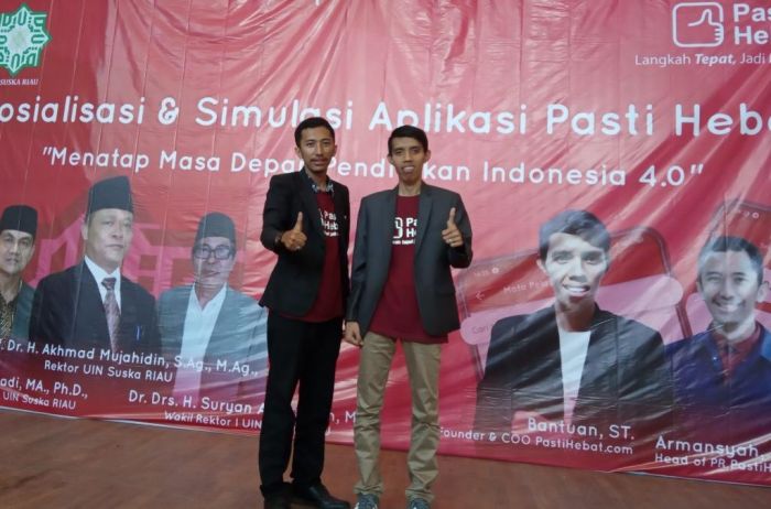 Pekanbaru—Dua orang alumni Universitas Islam Negeri Sultan Syarif Kasim II (UIN Suska), Bantuan dan Armansyah membuat aplikasi pastihebat.com yang disosialisasikan di Gedung Islamic Center UIN Suska dengan tema “Menatap Masa Depan Pendidikan Indonesia 4.0”, Senin (1/4).