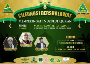 CILEUNGSI, Ansorjabar Online– Memperingati Nuzulul Qur’an GP Ansor Kabupaten Bogor Gelar Ansor Bershalawat pada Senin (12/06) di Masjid Jami’ Al-Isti-adah Kecamatan Cileungsi Kabupaten Bogor.