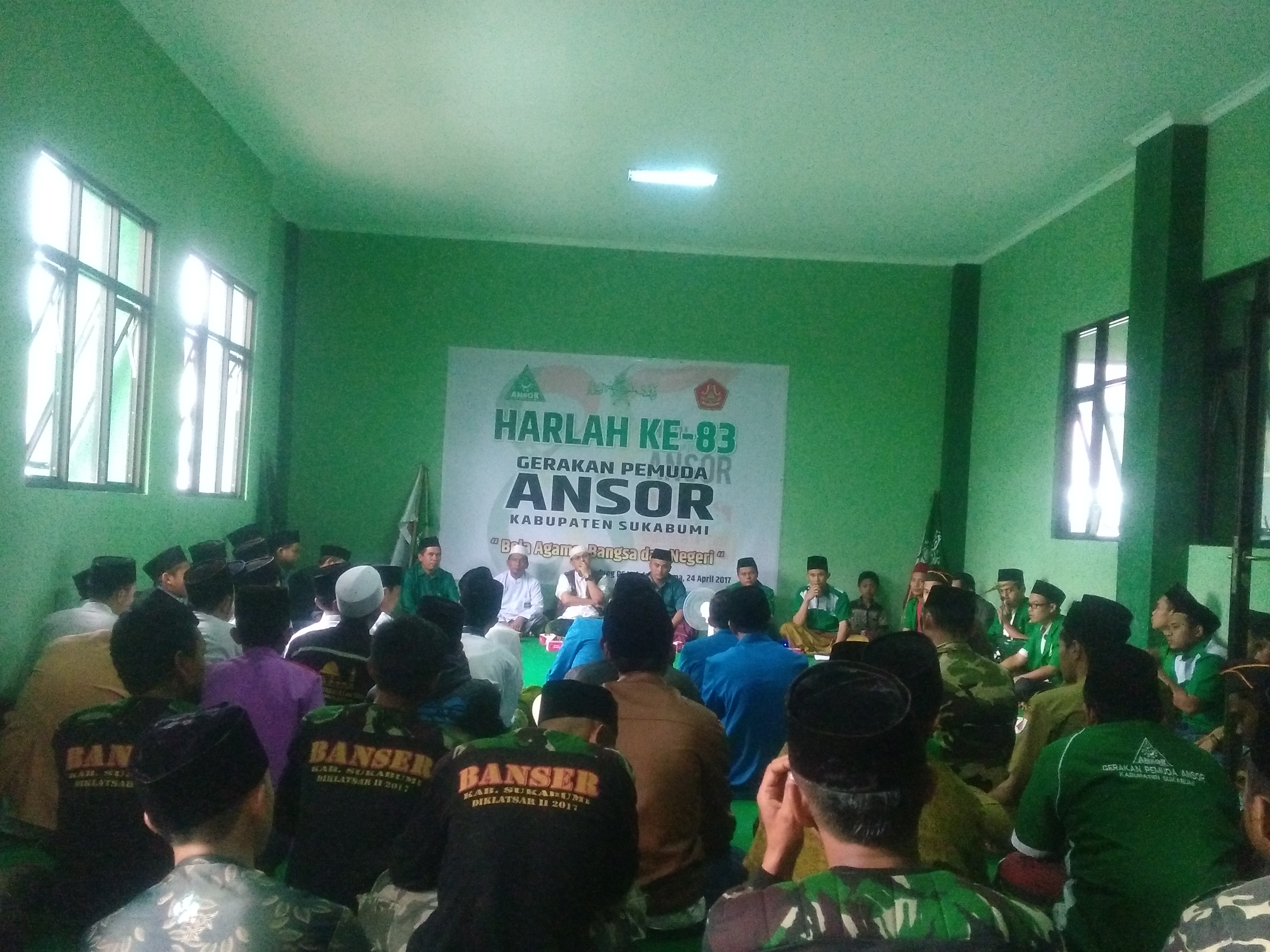Harlah yang di gelar Kab. Sukabumi mengambil tema kegiatan Harlah ini ” BELA AGAMA BANGSA DAN NEGERI” dan di isi dengan Tausyiah Kebangsaan yang mana pematerinya dari PC NU : Drs. KH. Ridwan Subagja & DEWAN PENASEHAT GP ANSOR Sahabat Muhammad Zainudin, S.Ag, MH,