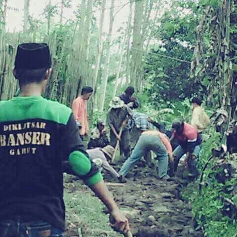 Seperti yang dilakukan oleh Satuan Koordinasi Rayon (Satkoryon) Banser Banyuresmi yang belum lama ini bersama masyarakat bergotong royong membangun jalan lingkungan pertanian di Desa Sukakarya Kecamatan Banyuresmi Kabupaten Garut (1/4).