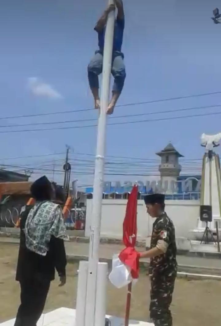 Banser Memanjat Tiang Bendera