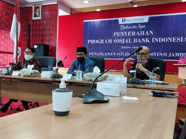 “Pada Mei lalu, BI telah menyalurkan paket bantuan sembako, Alat Perlindungan Diri (APD), sarung tangan serta bantuan social lainnya”, kata Bayu. Saat ini BI bekerjasama dengan UIN Jambi, OJK dan MES Jambi kembali menyalurkan paket bantuan sembako ke masyarakat.