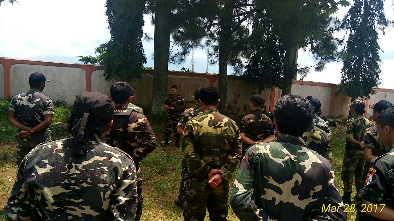 “Harus tenang, sabar dan santai dalam menanggapinya” Ujar Beliau di sela-sela Banser mengadakan latihan PBB.(aziz)