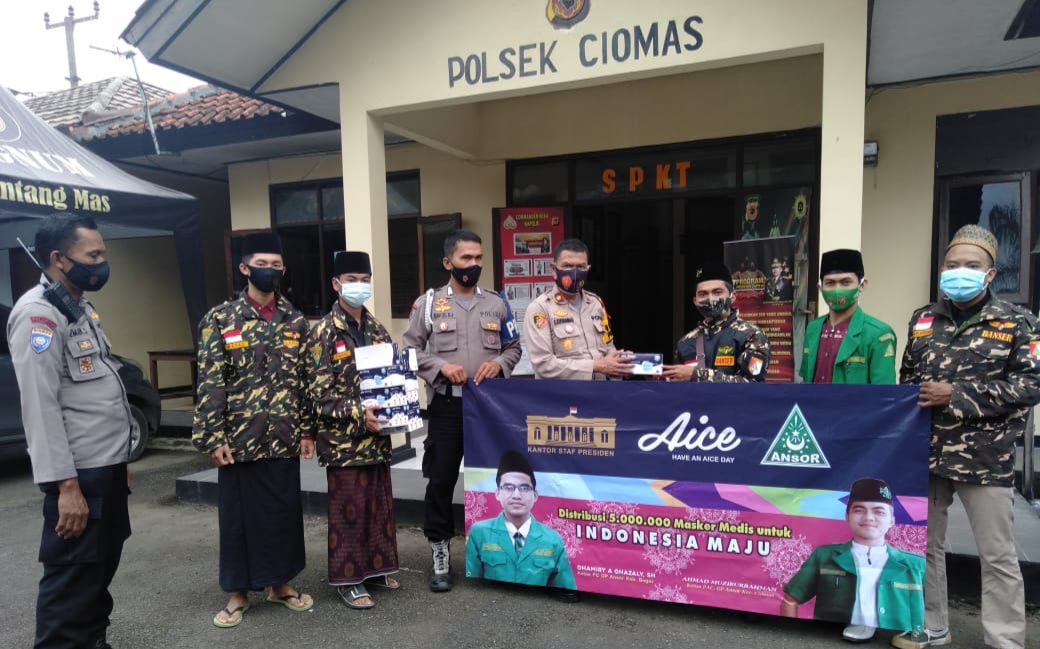 Penyerahan masker medis oleh kader GP Ansor Ciomas kepada masyarakat luas serta, Polsek Ciomas dan Puskesmas hingga Pemerintah Desa se Kecamatan Ciomas bertujuan untuk menangkal covid 19 pada pergantian tahun baru.