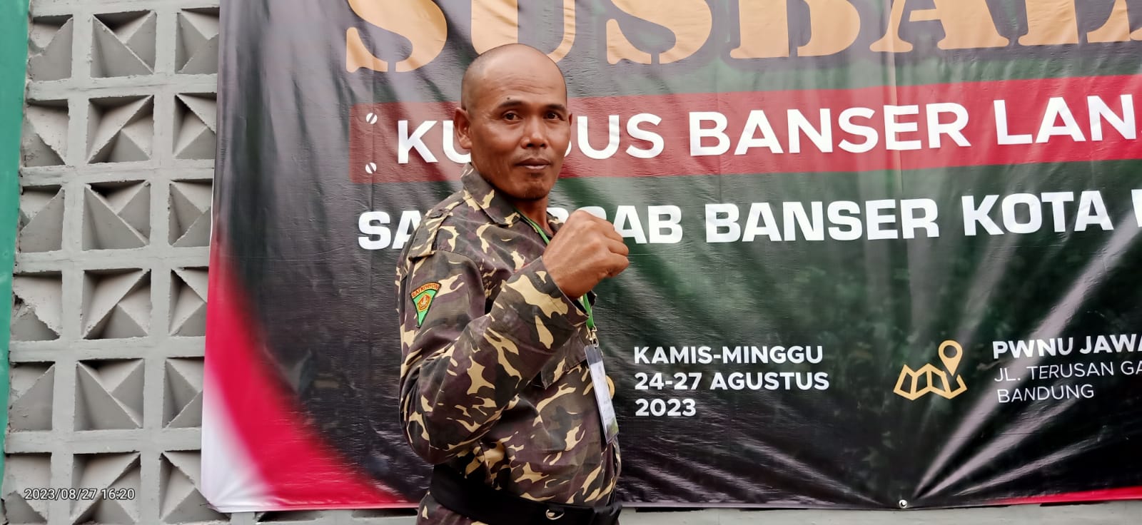 Pertengahan minggu ini, aktivitasnya sebagai tukang tahu gejrot berhenti total. Ia meminta izin istri untuk libur bekerja demi mengikuti kaderisasi Banser tahap kedua atau Kursus Banser Lanjutan (Susbalan) yang diselenggarakan Satuan Koordinasi Cabang Banser Kota Bandung.