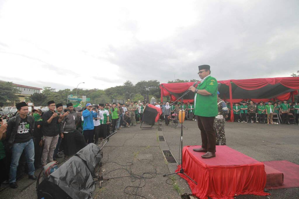 “Kita lawan dengan segenap jiwa dan raga hingga nyawa harus siap ditumpahkan, jika perlawanan kelompok penghujat dan penghina ulama sebagai Warastatun anbiya terus mengalir hingga kini berani menginjak harga dirinya melalui ikhtiar semu ingin mengganti azas tunggal NKRI yakni PANCASILA dengan sistem khilafah Islamiyah (Negara) Islam ,” tegas Ketum Gus Yaqut.