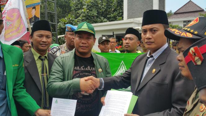 Pimpinan Cabang (PC) Gerakan Pemuda Ansor Kabupaten Indramayu merangsek ke DPRD, mendesak terbitnya regulasi agar tidak merebaknya kelompok anti pancasila.