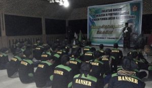 SUMEDANG – Satuan Koordinasi Cabang (Satkorcab) Barisan Ansor Serbaguna (Banser) Sumedang menggelar pendidikan dan latihan dasar (diklatsar) bagi anggota baru bertempat di lapangan sepakbola Buah Dua, Kabupaten Sumedang, Sabtu-Senin (17-19/09/2016). Selama tiga hari peserta digembleng secara fisik, mental dan kebatinan. Selain itu, para peserta dibekali materi tentang ke-NUan, Ke-Banseran dan Bela Negara.