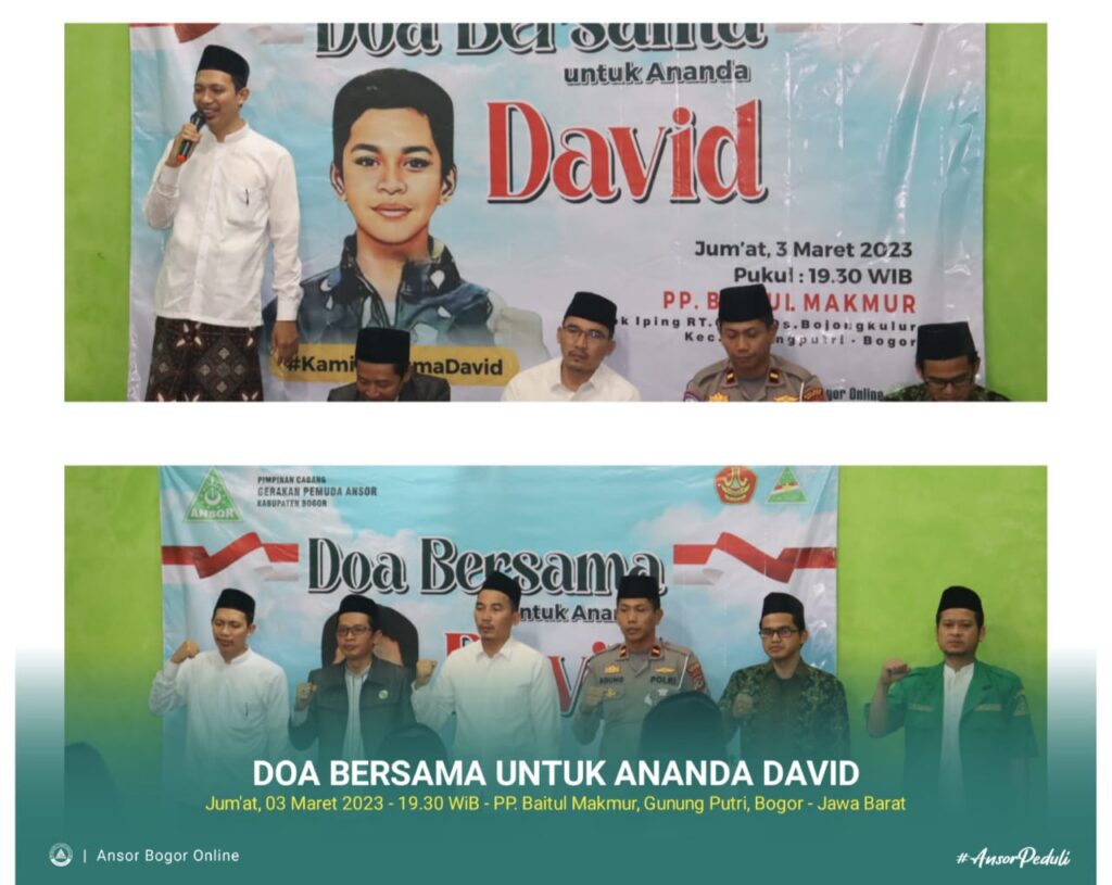 Ketua Pimpinan Cabang GP Ansor Kabupaten Bogor Dhamiri A Ghozali mengatakan, pihaknya sebagai sesama keluarga Besar Ansor Banser Kab Bogor ikut mendoakan Ananda David, “semoga senantiasa segera diberikan kesembuhan oleh Allah dan bisa Beraktifitas seperti sediakala,”ujarnya.