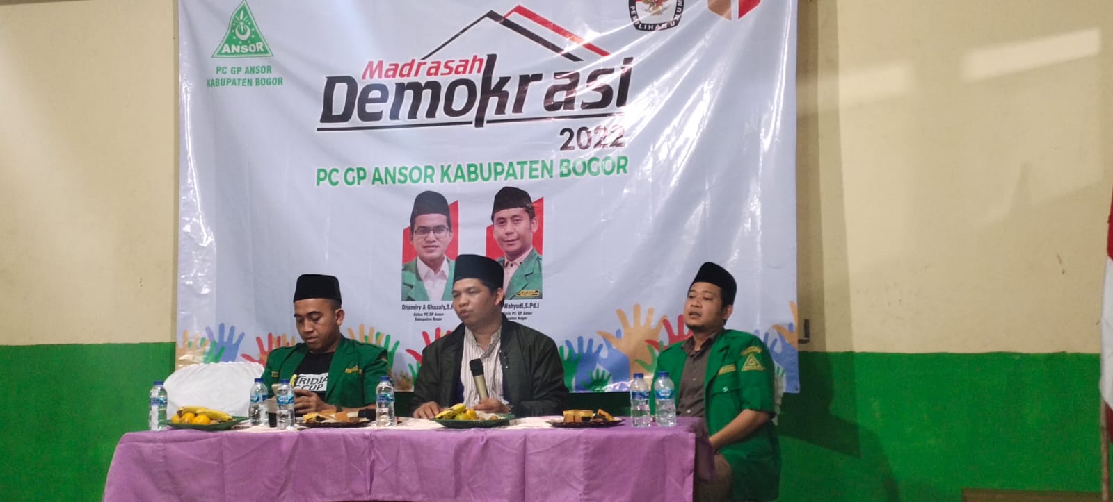 Pimpinan Cabang Gerakan Pemuda Ansor Kabupaten Bogor memperkuat wawasan kenegaraan para pemuda melalui sebuah kegiatan bernama Madrasah Demokrasi yang berlangsung dari 12 Agustus sampai dengan 18 September 2022.