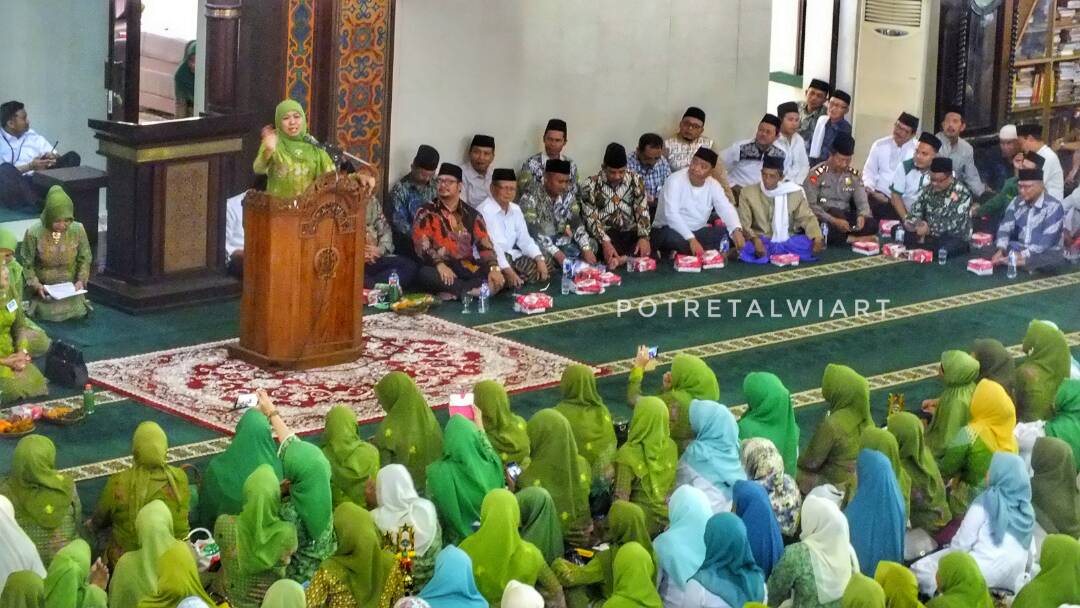 Hal tersebut disampaikan di depan ribuan Jema’ah oleh Ketua Umum PP Muslimat Dra.Hj. Khofifah Indar Parawansa, M.Sos dalam Mauidzah Hasanahnya pada peringatan Harlah NU ke-94 dan Muslimat ke-71 sekaligus Peringatan Isra Miraj di Mesjid Agung Kota Tasikmalaya, Ahad (30/4).