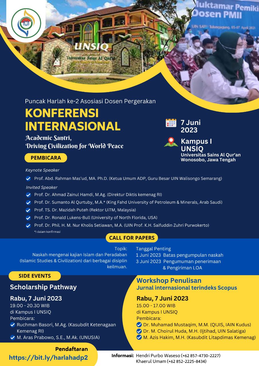 Akan hadir sejumlah nara sumber, Ronald Lukens-Bull dari University of North Florida, Direktur Pendidikan Jenderal Pendidikan Islam Kemenag RI, Prof Dr. Muhammad Ali Ramdhani, Guru Besar dan Rektor Universitas NU.