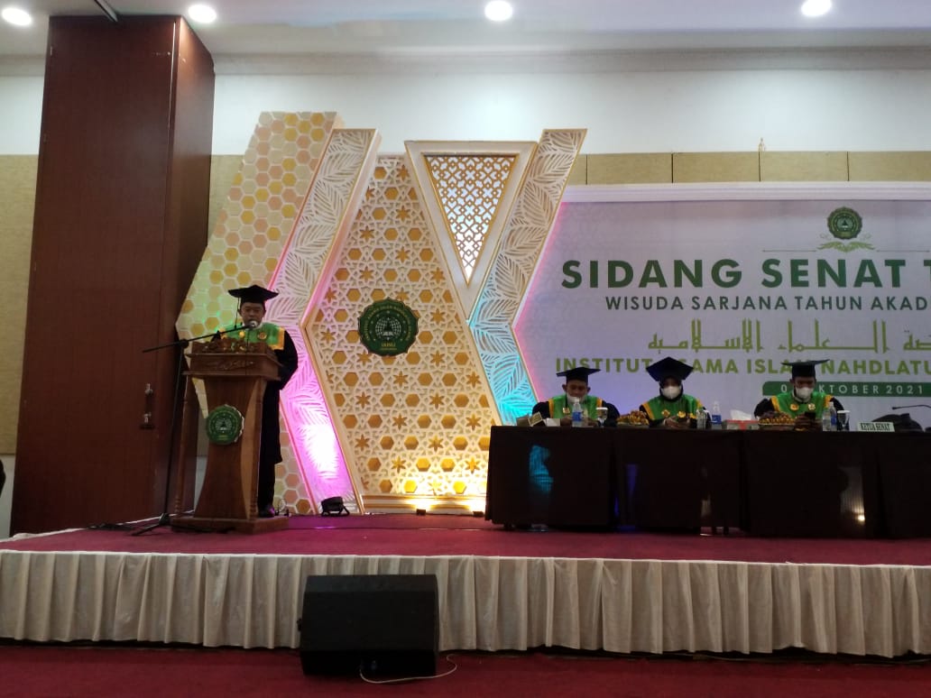 Sementara itu Kasubdit Sarpras dan Kemahasiswaan Direktorat Diktis Kemenag RI Ruchman Basori yang didapuk menyampaikan orasi ilmiah mengatakan ada dua peluang dan tantangan yang harus di respon para sarjana saat ini, yaitu revolusi industri 4.0 dengan kehidupan yang serba digital dan bonus demografi Indonesia 2045.