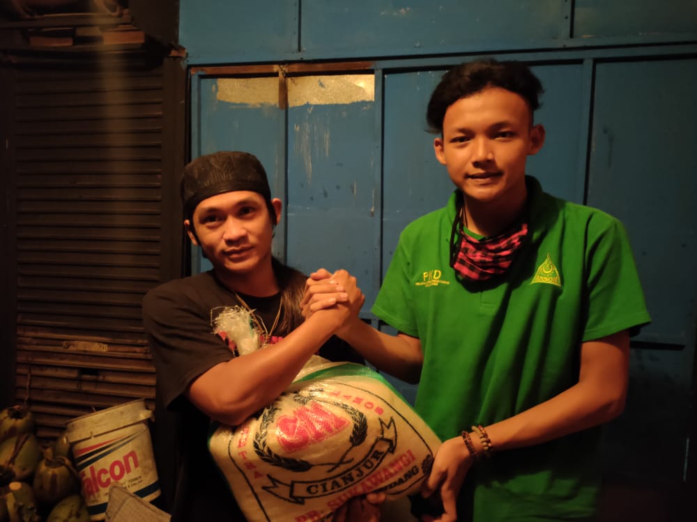 Kota Sukabumi, 12/05/2020. Pengurus Pimpinan Anak Cabang (PAC) Gerakan Pemuda Ansor Kecamatan Baros Kota Sukabumi menginisiasi program berbagi segelas beras (perelek) dari warga yang mampu kepada warga terdampak covid-19 di wilayah Kecamatan Baros Kota Sukabumi.
