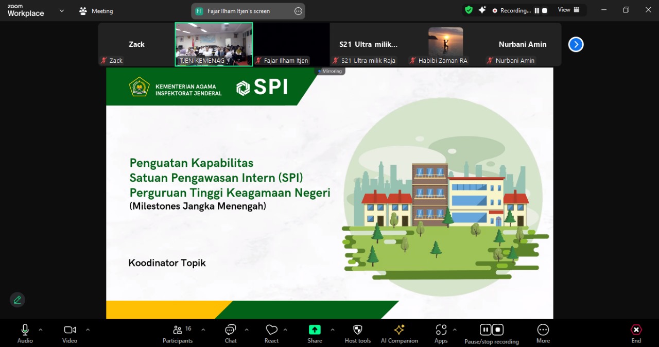 Inspektur Wilayah II Inspektorat Jenderal Kementerian Agama Ruchman Basori mengatakan rangkaian panjang telah dilakukan, dari mulai pemetaan dan penguatan SPI, saat ini memasuki tahapan evaluasi penguatan kapabilitas, aspek kelembagaan, sumber daya manusia dan aspek tata kelola pengawasan.