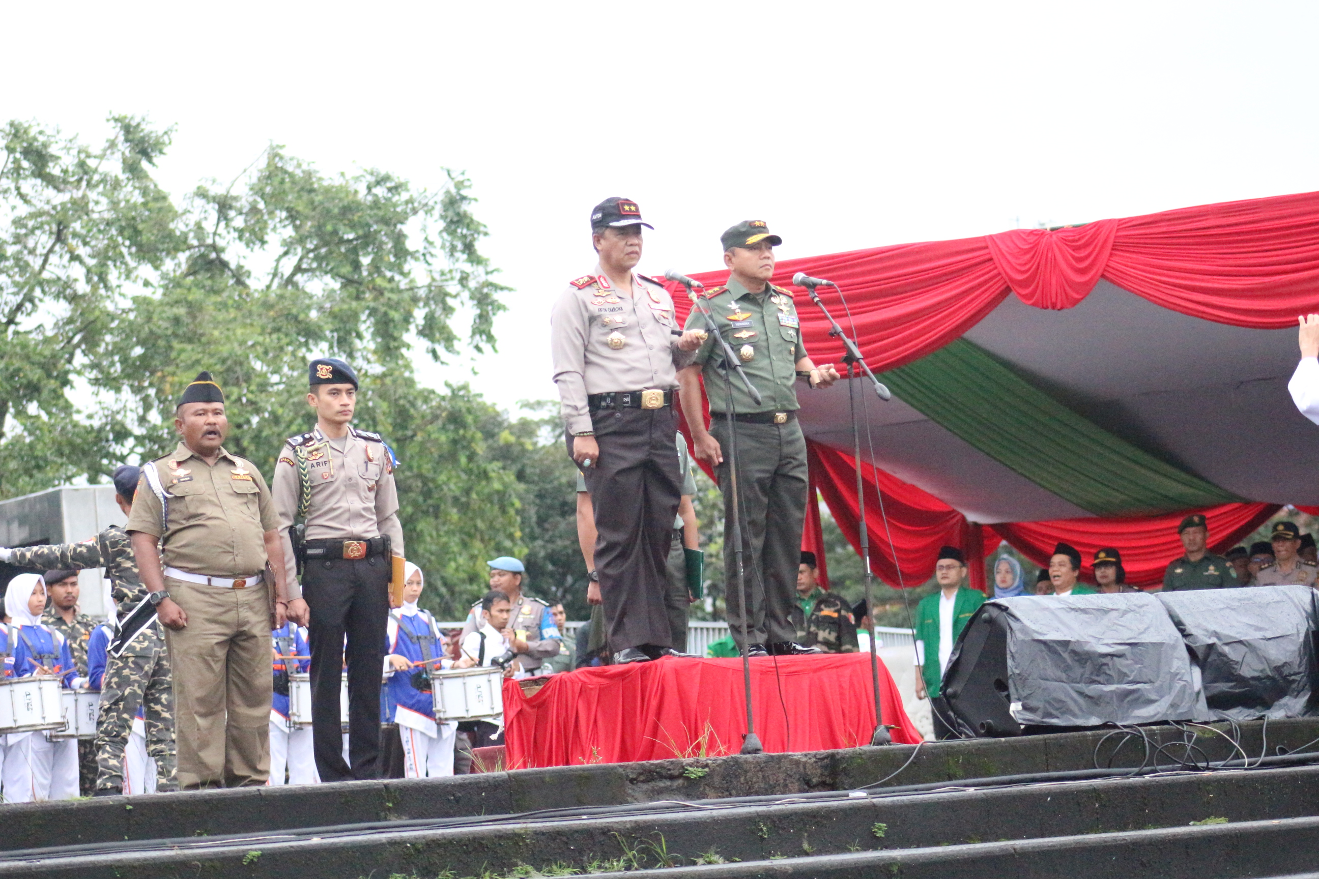Kapolda Jawa Barat Irjen Anton Charlian dan Pangdam III Siliwangi Mayor Jenderal Muhammad Herindra memimpin acara apel kebangsaan yang dilaksanakan Pimpinan Wilayah Gerakan Pemuda Ansor Jawa Barat, Rabu (10/05/2017), di Monumen Perjuangan, Kota Bandung.