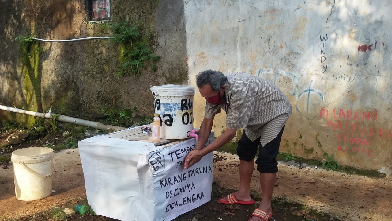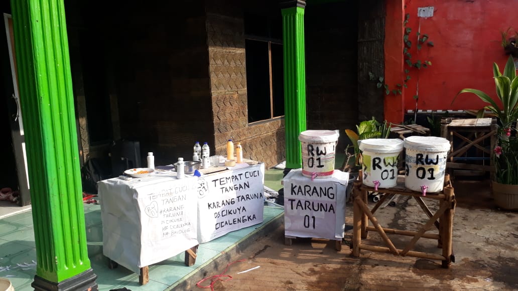 Dengan dilakukanya PSBB yang di terbitkan oleh pemerintah . Banyak sekali Warga yang bekerja diluar kota kembali ke kampung halamanya . Salah satunya di wilayah Rw 01 Desa Cikuya Kecamatan Cicalengka Kab.Bandung . Membuat karang taruna dan Ketua Rw menggagas beberapa program pencegahan Covid-19 salah satunya Pembuatan Tempat Pencuci Tangan yang akan disimpan di jalan masuk atau gang-gang masuk yang ada di wilayah Rw 01, tidak hanya itu Tempat Pencuci Tangan pun di simpan di tempat ibadah untuk menjaga kebersihan warga.