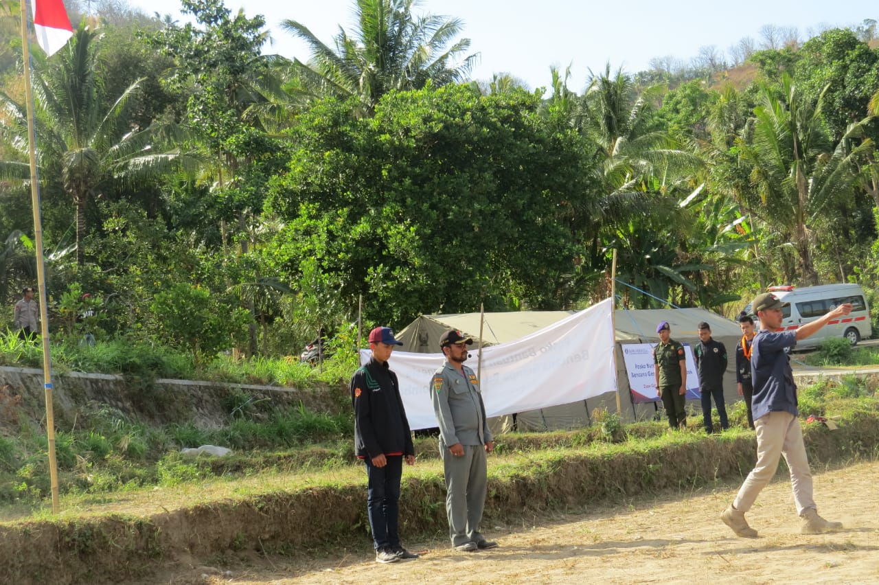 “Kesanya kita tetap bisa apel bendera, meskipun di lokasi pengungsian, bahwa upacara yang dilaksanakan di tempat pengungsi korban gempa tersebut jauh lebih sangat ringan dibanding perjuangan yang dilewati para pejuang kemerdekaan”. Paparnya