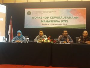 Kegiatan Workshop Kewirausahaan Mahasiswa PTKI dilaksanakan pada tangggal 12-14 september 2018 dan diikuti oleh 30 mahasiswa yang berasal dari perwakilan PTKI se-Indonesia.Hadir dalam kegiatan Ivan Rahmawan Dosen sekaligus nara sumber, Otisia Arinindiyah Kasi Sarpras pada PTKIS dan Nur Yasin Kasi Sarpras pada PTKIN.(RB).