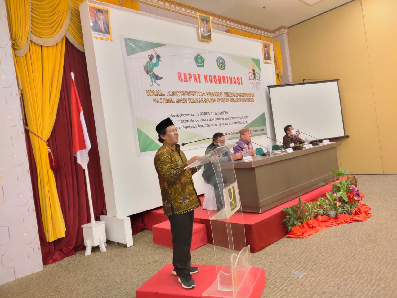 Ketua Forum Wakil Rektor/Wakil Ketua PTKIN se-Indonesia Timur Prof. Darussalam menerangkan 14 Wakil Rektor/Wakil Ketua PTKIN se-Indonesia Timur hadir mengikuti Rapat Koordinasi untuk memantapkan Petunjuk Teknis (Juknis) POROS INTIM, peninjauan venue perlombaan dan persiapan-persiapan lainnya.