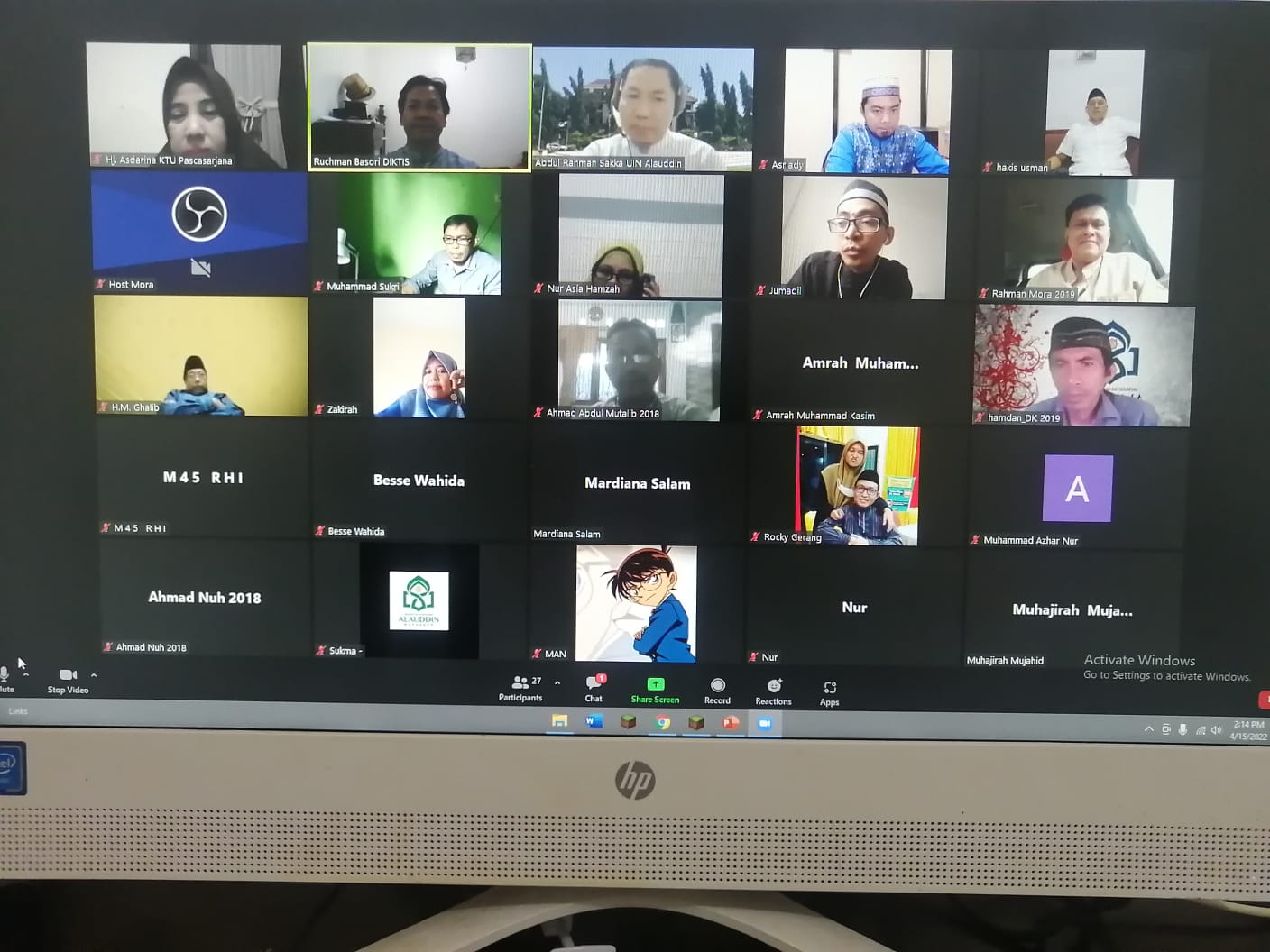 Pernyataan itu diungkapkan Kasubdit Ketenagaan Direktorat Pendidikan Tinggi Keagamaan Islam (DIKTIS), Ditjen Pendidikan Islam Ruchman Basori saat memberikan pembinaan peserta Program Beasiswa 5000 Doktor UIN Alauddin Makasar, pada Jumat (15/4) melalui zoom.