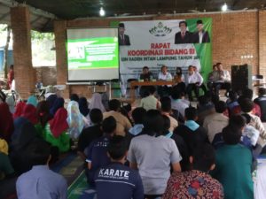 Rapat Koordinasi Bidang Kemahasiswaan UIN Raden Intan Lampung dilaksanakan pada tanggal 27-28 Februari 2019 dan diikuti oleh 76 orang Pengurus Organisasi Kemahasiswaan Intra Kampus dan pajabat terkait. Nampak hadir, Kepala Biro Administrasi Akademik, Kemahasiswaan, dan Kerja Jumari Iswadi, Wakil Dekan III se-UIN Lampung, Kabag Akademik Farida dan civitas akademika lainnya.(RB)