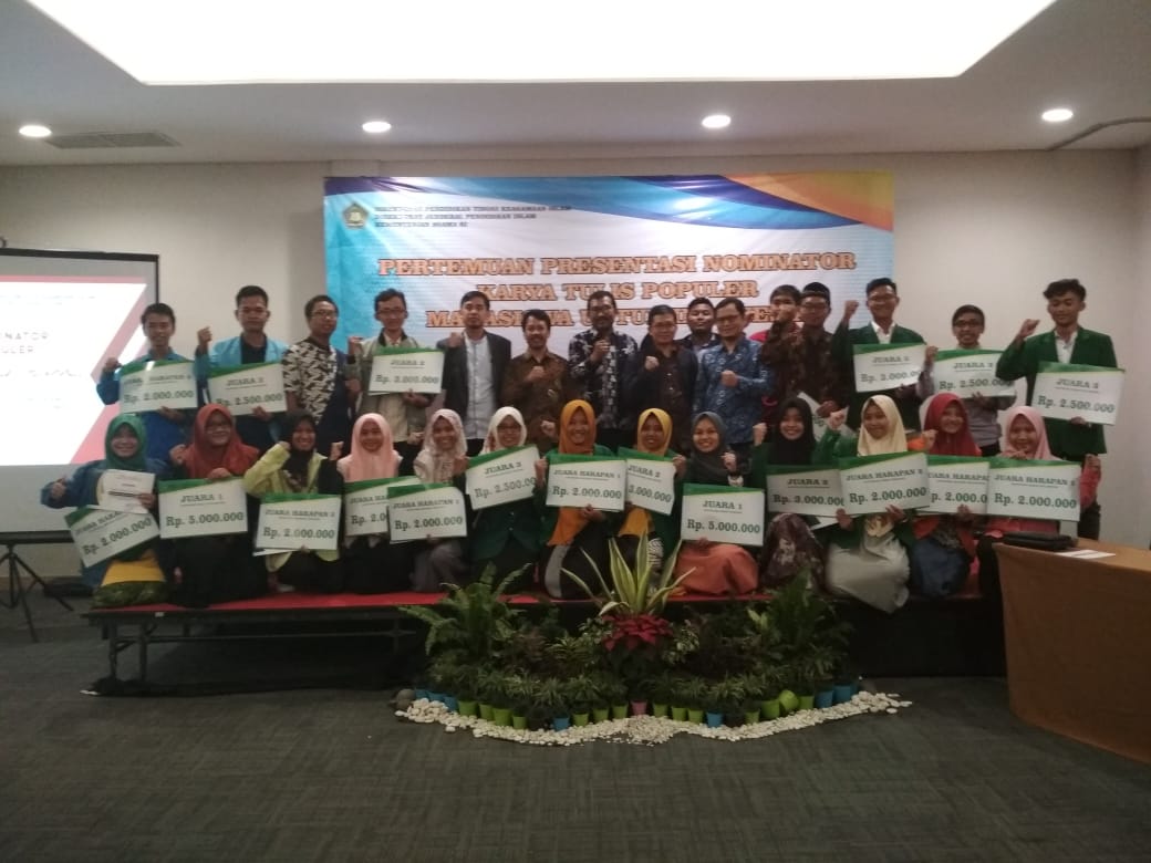 Ketua Dewan Juri Asrori S Karni mengumumunkan nama-nama juara Kompetisi Karya Tulis Mahasiswa PTKI Tahun 2018 adalah sebagai berikut: