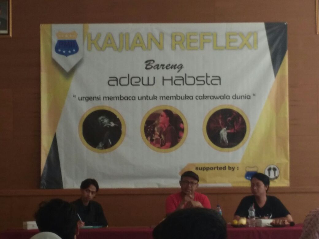 Narasumber yang dihadirkan Adhew Habsta (Penulis Buku) dan Agy Gimafara (Musisi) dimoderatori oleh Ahmad Tobroni.