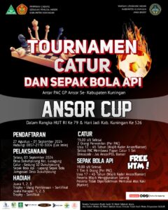 Peringatan HUT RI ke-79 dan hari jadi Kabupaten Kuningan ke-526 tahun ini sangat berbeda, mengingat Pimpinan Cabang (PC) Ansor Kabupaten Kuningan menggelar Turnamen Catur Dan Sepak Bola Api di ruangan Aula SDN Dukuhpicung Kecamatan Luragung Kabupaten Kuningan, Rabu (04/08/2024).