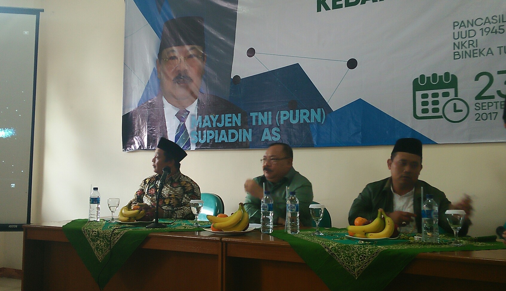 “Dengan Pancasila itu menjadikan identitas bangsa kita tidak tathorruf (red: ekstrim) ke kanan maupun ke kiri. Bangsa kita adalah kelompok tawasuth (tengah). Pikiran dan gerakan yang memaksakan condong ke kanan maupun ke kiri harus kita tolak, karena tidak memiliki relevansi bagi kehidupan bangsa Indonesia,” kata Deni dalam Diskusi Pancasila dan Kerukunan Nasional, Sabtu (23/09/2017), di Gedung Dakwah PWNU Jawa Barat, Jalan Terusan Galunggung, Kota Bandung.