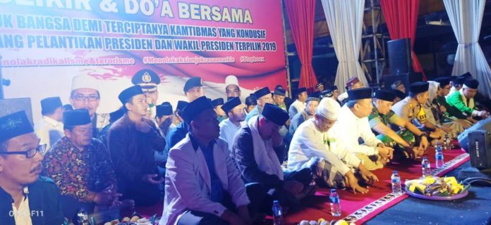 KARAWANG- Jelang pelantikan Presiden dan Wakil Presiden RI Joko Widodo dan KH Ma’ruf Amin yang dijadwalkan 20 Oktober 2019 mendatang, tokoh agama di Karawang gelar dzikir dan doa bersama, Selasa (15/10/2019) malam di depan kantor Nahdlatul Ulama (NU) Karawang.