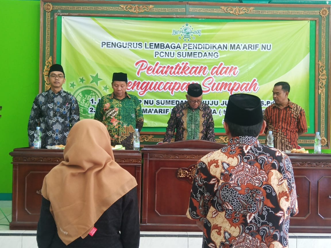 Sumedang (28/09/2019), Pengurus Cabang Nahdlatul Ulama Kabupaten Sumedang melalui LP Ma’arif NU Sumedang melantik 2 Kepala Sekolah/Madrasah baru pada Sabtu, 28 September 2019 bertempat di Aula PCNU Kabupaten Sumedang. Adapun yang dilantik tersebut adalah Bapak Drs. Maman Sebagai Kepala MTs Ma’arif Sidaraja dan Ibu Juju Juangsih, S.Pd. sebagai Kepala SMPNU Sumedang.