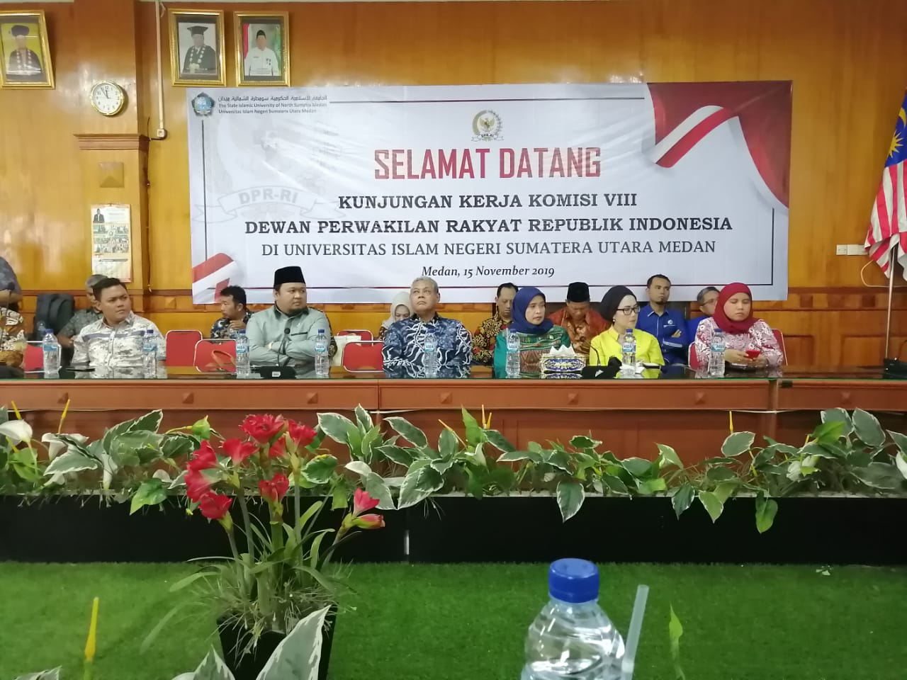Menanggapi hal itu Saidurrahman Rektor UIN Sumatra Utara berterimakasih kepada Komisi VIII DPR RI yang telah berkenan mengunjungi kampusnya. “Kedatangan bapak dan ibu bagi kami adalah bukti kecintaan bapak dan ibu kepada kami, dan semua saran insya Alloh kami laksanakan”.