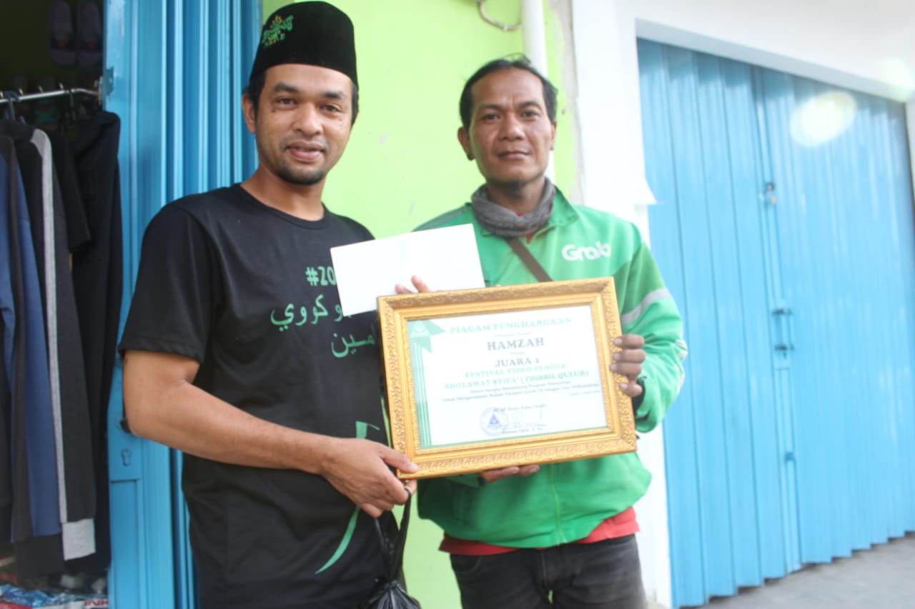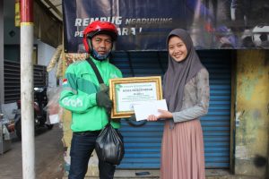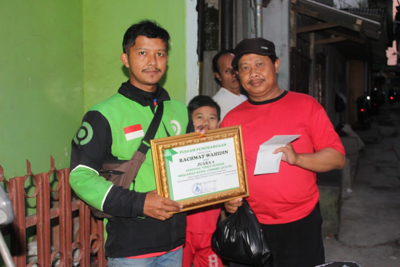 Lewat Ojek Online, GP Ansor Kota Cimahi Kirimkan Hadiah Kepada Pemenang Festival Vidio Pendek Sholawat Thibbil Qulub.