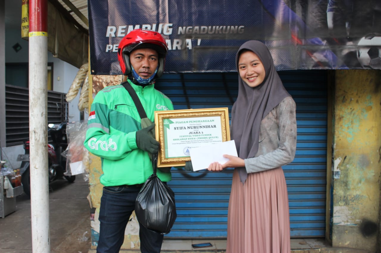 Hadiah yang akan di berikan kepada para Juara Festival Vidio Pendek Sholawat Thibbil Qulub/ Syifa yaitu Uang Pembinaan+Quota+Piagam Penghargaan+ 1 Paket Sembako , Hadiah tersebut Kami Kirim Lewat Ojek Online dengan harapan bisa sedikit membantu juga kepada para Driver Ojek Online yang memang terkena dampak secara ekonomi oleh wabah Covid 19 ini.