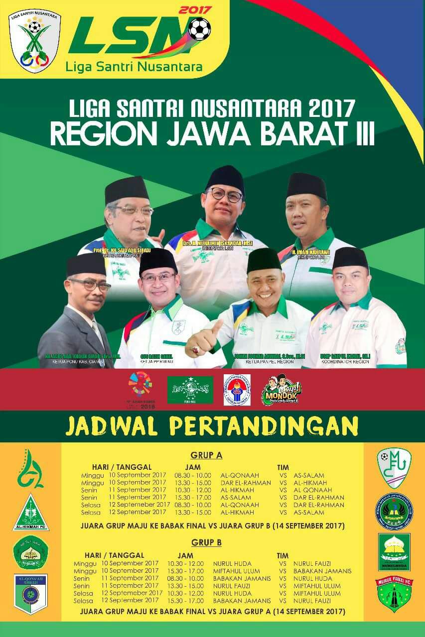 Liga Santri Nusantara Region 3 Jawa Barat yang digelar di Stadion Maleber telah memasuki partai terakhir. Lima Tim dari 8 kesebelasan masih menetukan takdirnya sampai pada partai terakhir.