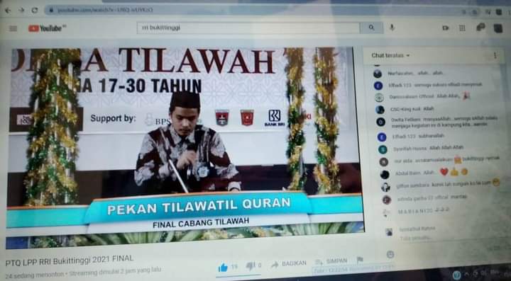Pekan Tilawatil Qur’an RRI berlangsung pada 13-15 April 2021 di masa pandemi Covid-19. Kegiatan dibuka oleh Walikota Bukittinggi Erman Safar yang diwakili oleh Kabag Kesra Setdako Bukititnggi, Eryanson, pada Selasa (13/4).