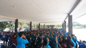 Ujar Muhammad Agfi Rizi Selaku Korlap Aksi. pengkerdilan KPK carut-marutnya tata kelola agragria yang berhadiah sepatu dan senjata bagi pejuang tanah dan mahasiswa, dan yang terakhir soal nafas yang ditukar dengan asap. Akhir-akhir ini kita dihebohkan dengan sekian upaya pemerintah untuk mengkebiri prinsip dasar demokrasi dengan akan disahkanya RUU KUHP yang menurut nya adalah bentuk nyata dari kesablengan para Penguasa.