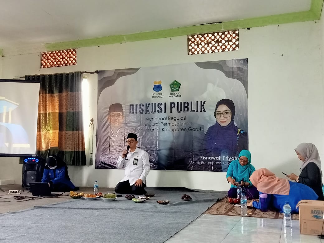 Prihatin dengan masih banyaknya kasus pernikahan dini dan minimnya pemahaman masyarakat tentang regulasi pernikahan Korp Pergerakan Mahasiswa Islam Indonesia Puteri (Kopri) Cabang Kabupaten Garut menggandeng Kementrian Agama Kabupaten Garut gelar diskusi publik dengan fokus bahasan mengenal regulasi dan mengurai permasalahan perkawinan di Kabupaten Garut bertempat di Aula Sekretariat PC. NU Kabupaten Garut Lt. 3 Jl. Suherman No 117 Desa Jati Kecamatan Tarogong Kaler Kabupaten Garut pada Senin (27/09/2021).