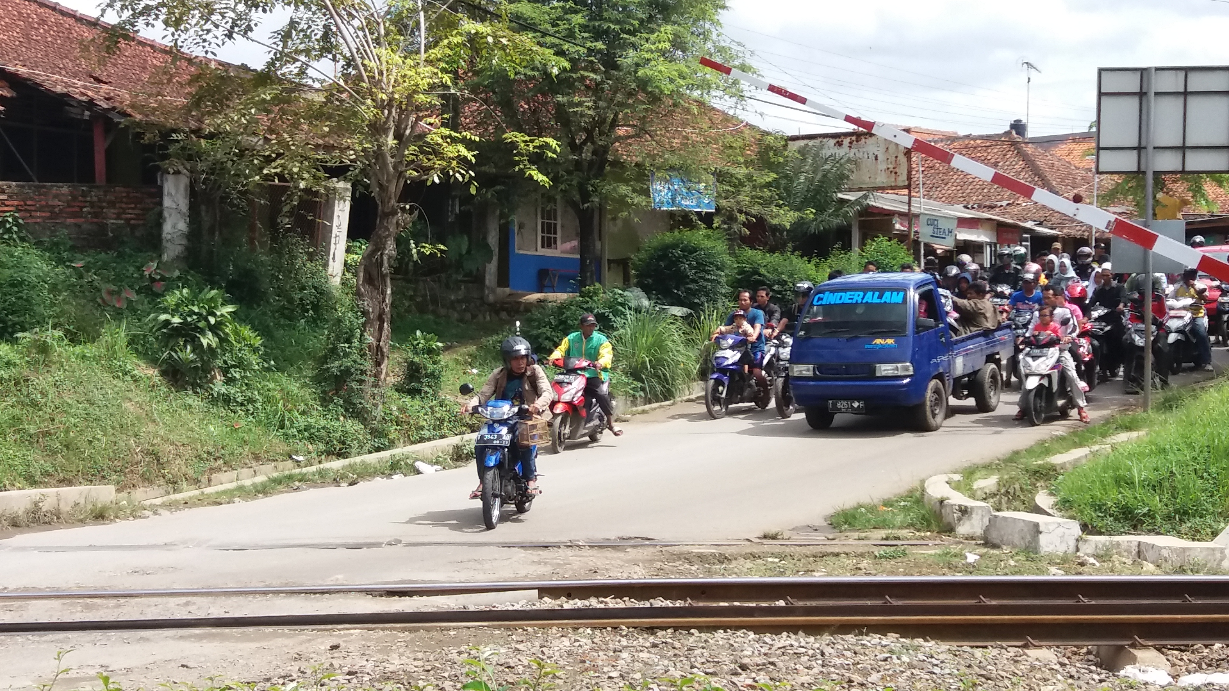 Menerobos palang pintu kereta api sudah menjadi budaya di Indonesia, salah satunya di palang pintu kereta api di Kecamatan Plered Kab. Purwakarta, Jum’at (06/01/17)