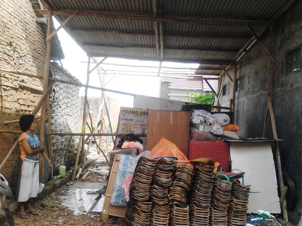 ‘Kami berusaha membangun rumah kembali dengan alakadarnya setelah ambruk, termasuk menggunakan bahan rumahnya yang masih bisa digunakan kembali,” bebernya.