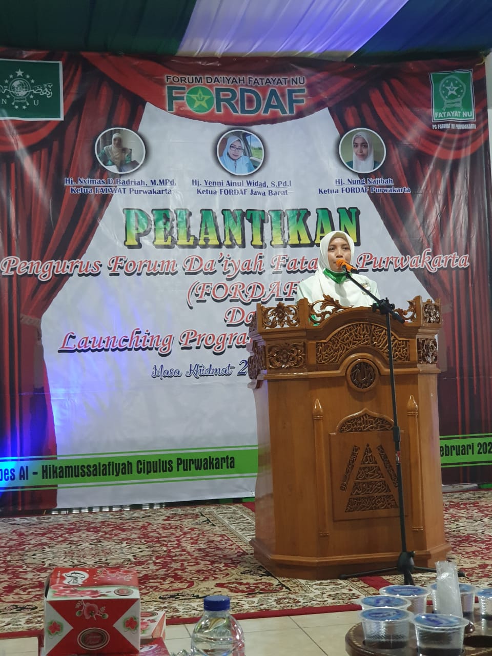 Hari ahad tgl 07 Feb 2021 PC Fatayat NU Kab Purwakarta melaksanakan pelantikan terhadap pengurus Forum Da’iyah Fatayat(fordaf) Purwakarta yg bertempat di Ponpes Al-Hikamussalafiyah Cipulus Purwakarta.