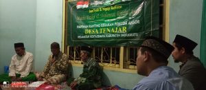 Kiyai Iing Masruhin ketua Tanfidziyah MWC NU Kertasemya beliau berpesan dalam sambutanya saya sangat senang dengan diadakanya kegiatan rutinan doa bersama yang dilakukan oleh pemuda ansor yang hari ini dilaksanakan ditenajar, ini sebagai ciri bahwa khususnya ditenajar ansornya jalan dan aktif, sehingga ini bisa menjadi contoh di desa-desa lainya. Belaiau juga menyampaikan kenapa kita harus masuk menjadi bagian pemuda ansor atau orang NU dan kenapa kita harus Khidmah kepada NU, tujuan kita hanya satu yaitu agar diakui menajdi santrinya mbah Hasyim Asy’ari, kalua beliau sendiri berpesan “sapa wonge sing ngurusi NU bakal diaku santriku, sapa sing dadi santriku tak doana husnul khotimah”. Inilah yang harus menjadi semangat kita agar selalu Khidmah terhadap NU, mudah-mudahan dengan Khidmah di NU kita wafat dalam keadaan khusnul khatimah.