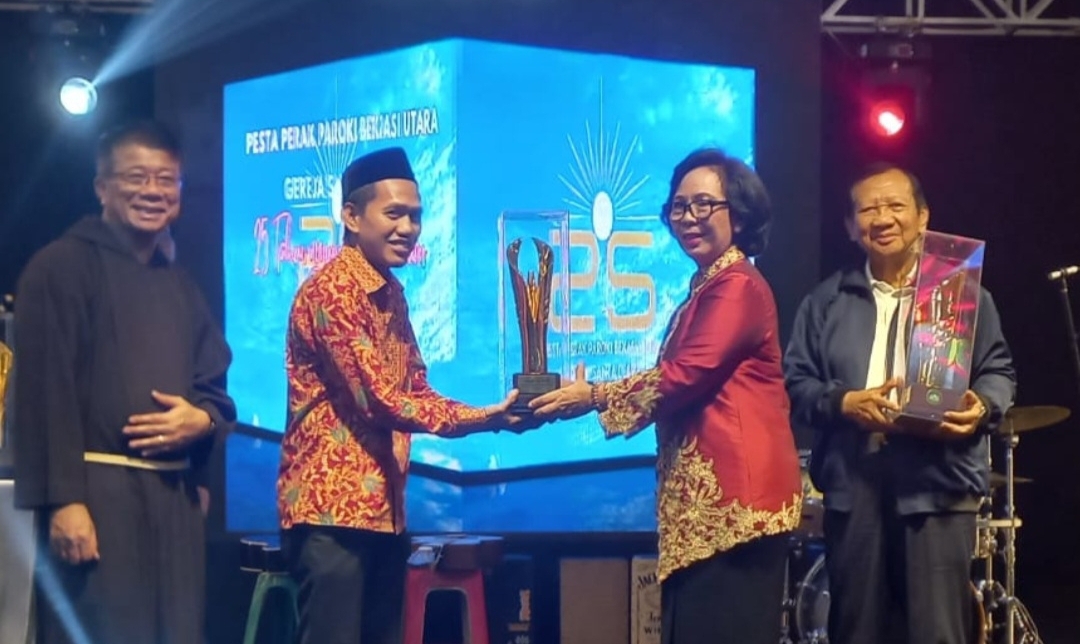 Di acara hari ulang tahun Paroki Ke-25 yang bertempat di Gereja Santa Clara, Bekasi, pemuda NU, Muhammad Jupri, meraih penghargaan sebagai tokoh muda dialog antar umat beragama, Sabtu (12/08/23).