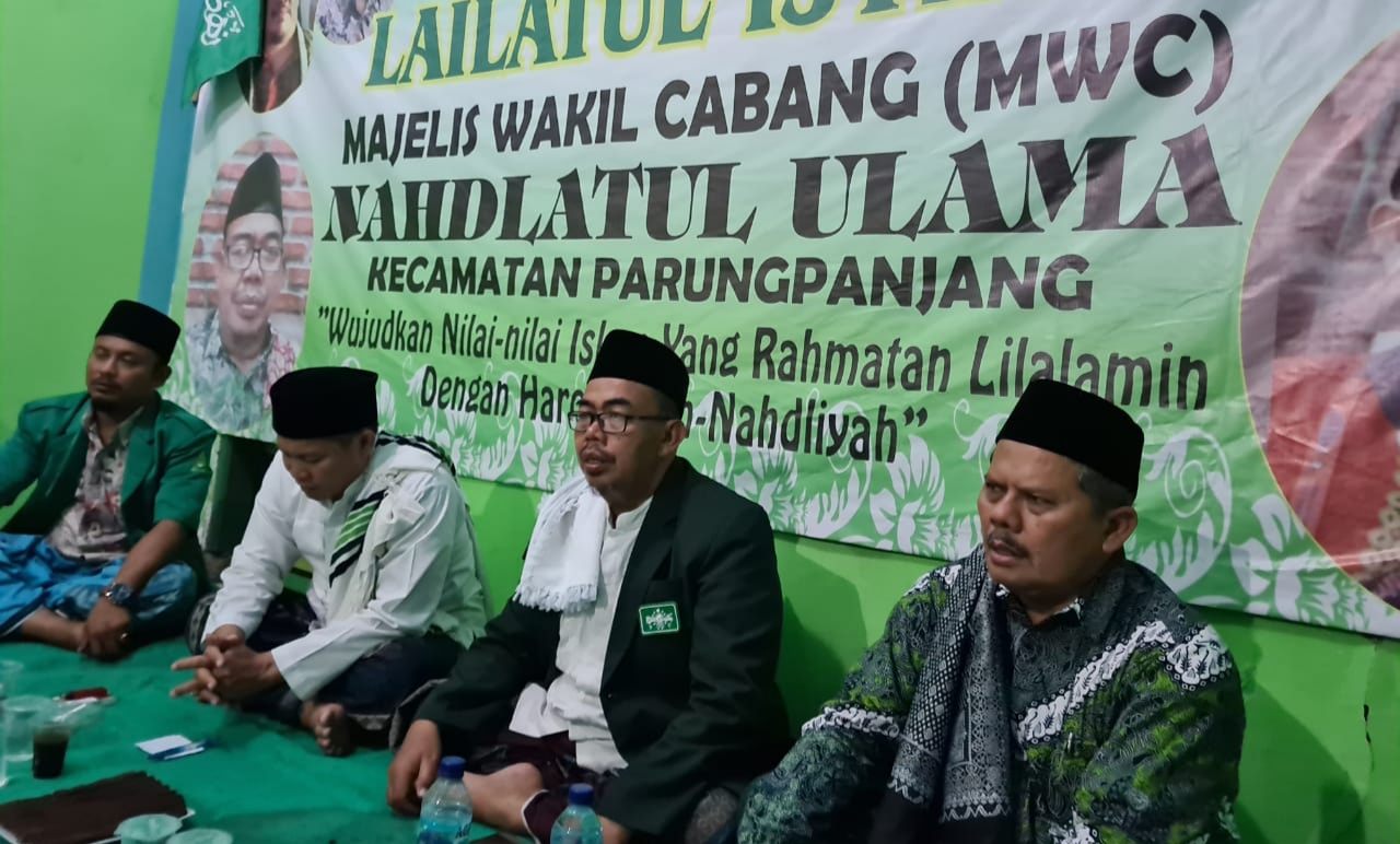 Ketua MWCNU Parungpanjang menyaipaikan, masyarakat kita dalam melaksanakan kegiatan pengajian itu mengacu pada pergerakan Nahdliyyah, pergerakan NU, dan harokah NU kegiatan Nahdliyyah.
