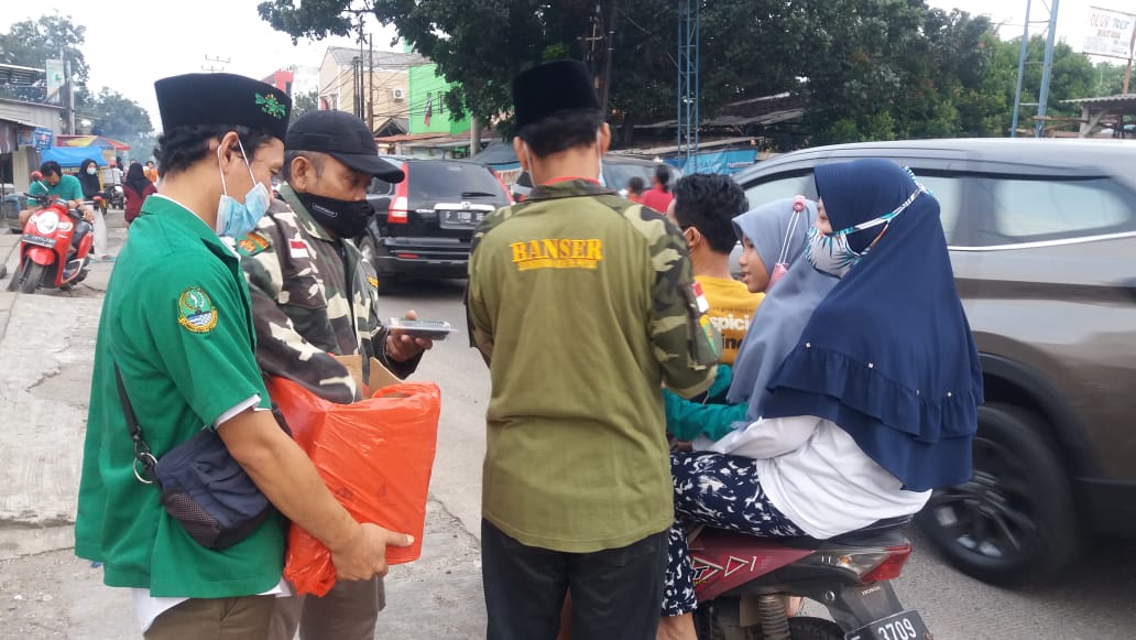 Seperti yang telah dilakukan Pengurus Ranting Gerakan Pemuda Ansor (PR GP Ansor) Desa Cicadas Kecamatan Gunung Putri, membagikan menu berbuka puasa secara geratis bagi pengguna jalan di jalan raya Cicadas desa setempat.