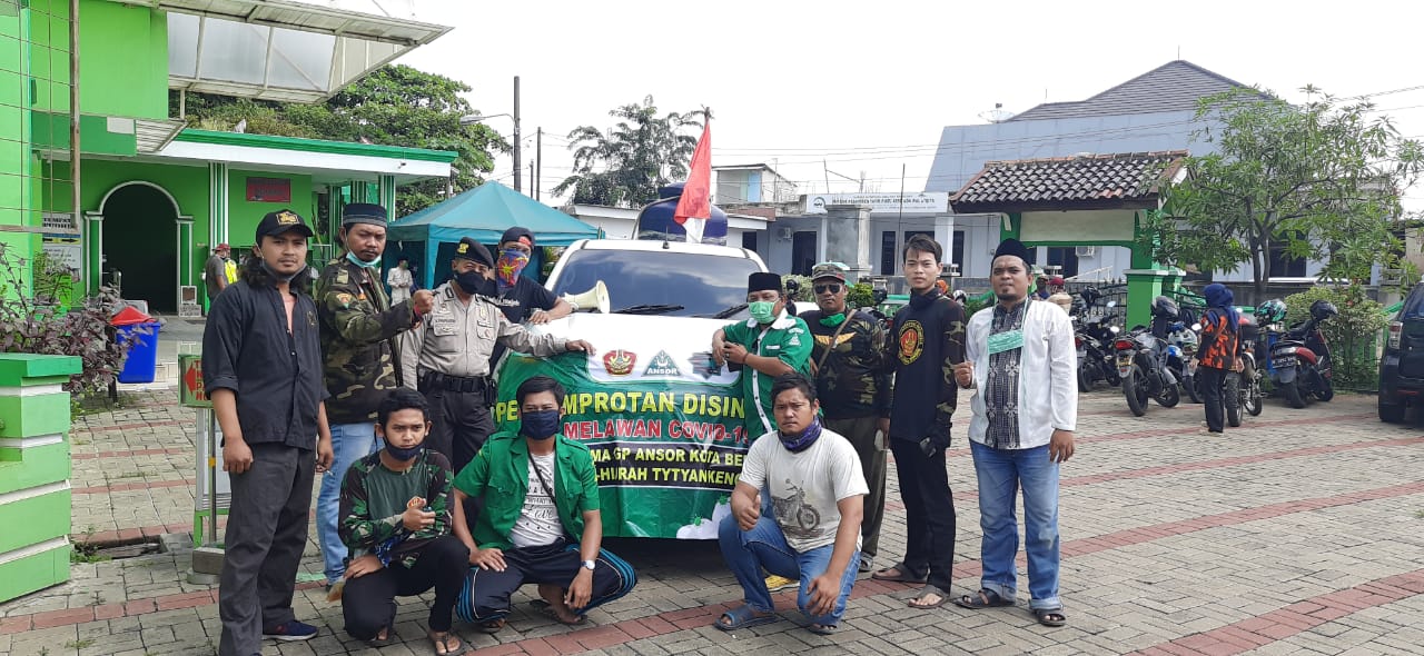 Sekretaris GP Ansor Kota Bekasi Hasan Muhtar menambahkan bahwa “mulai hari ini Selasa, 14 April 2020 sampai seminggu kedepan kami ada kegiatan tambahan yaitu penyemprotan disinfektan di jalan – jalan kampung atau jalan perumahan. Kegiatan ini dimaksudkan untuk membantu Pemerintah Kota Bekasi dalam penanganan Pandemic Corona. Pemerintah dengan jajarannya sudah melakukan penyemprotan di jalan – jalan utama, nah kami GP Ansor Kota Bekasi yang memperkuat dengan melakukan penyemprotan di lingkungan warga.”