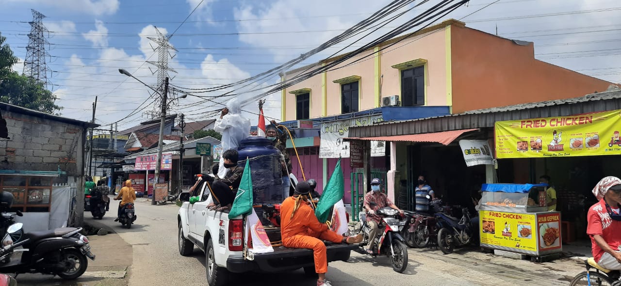 Penyemprotan Disinfektan di Jalan Kampung PAC GP Ansor Bekasi Utara