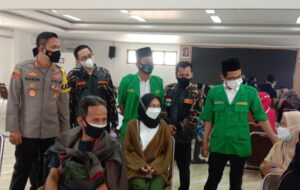 CIBINONG – Pimpinan Cabang Gerakan Pemuda Ansor (PC GP Ansor) Kabupaten Bogor, bersama Polres Bogor menggelar vaksinasi massal di Polres Bogor bertampat di jalan raya Tegar Beriman, Cibinong, Bogor, Sabtu (07/08/2021).