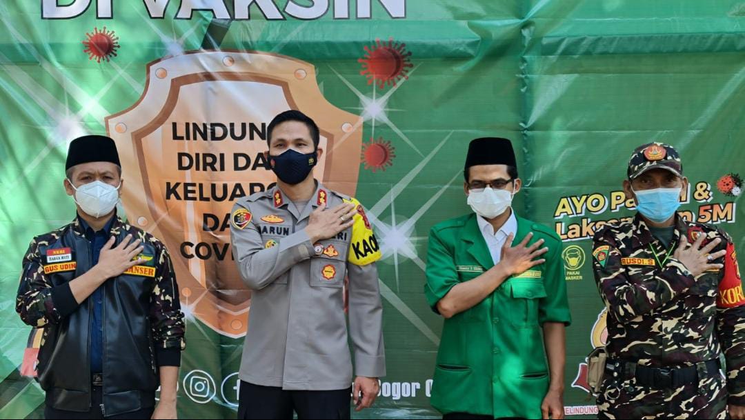 “Kegiatan vaksinasi ini bagia keikutsertaan satgas Covid 19 GP Ansor dalam mendukung percepatan vaksinasi di Kabupaten Bogor, “kata Ketua PC GP Ansor Kabupaten Bogor, Dhamiry A Ghozaly di Polres Bogor.